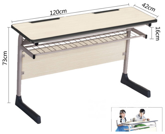 桌腳配有防護(hù)套,防止噪音,避免刮傷地板,桌面有效的調(diào)節(jié)傾斜,有利于背部和腰部的姿勢(shì),減少脖子和眼睛的疲勞。桌面帶有儲(chǔ)存功能,便于學(xué)生使用。